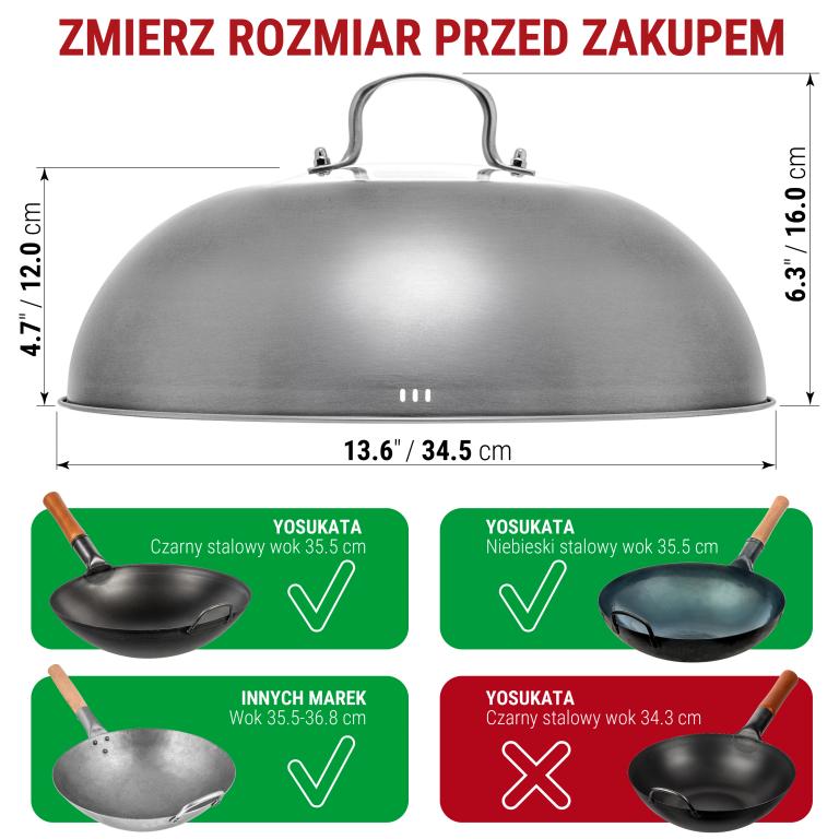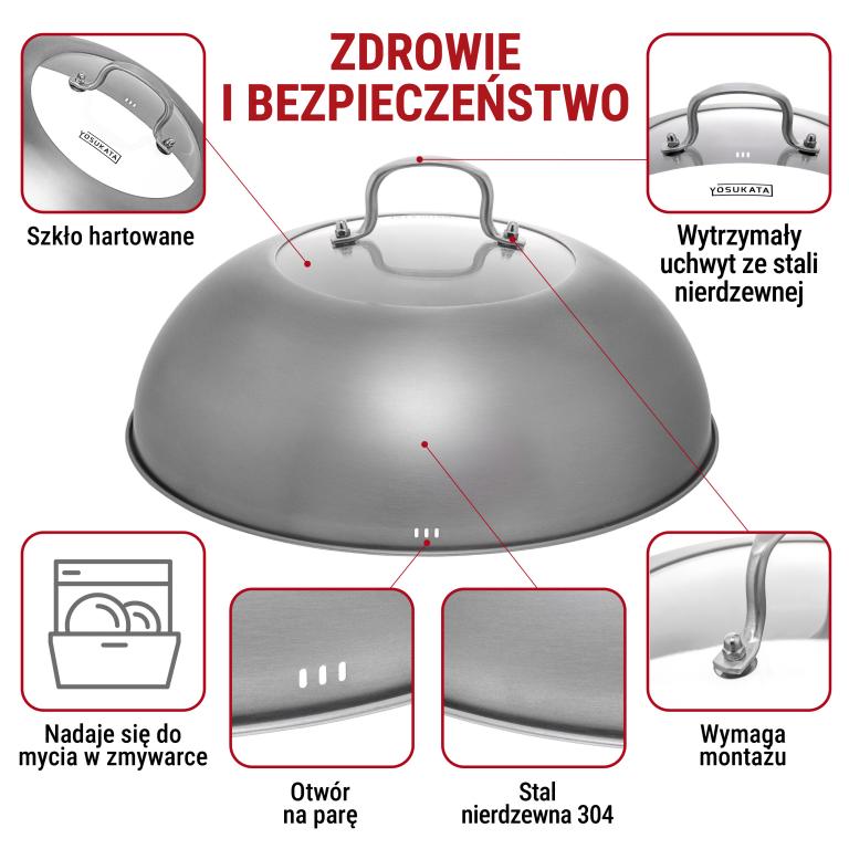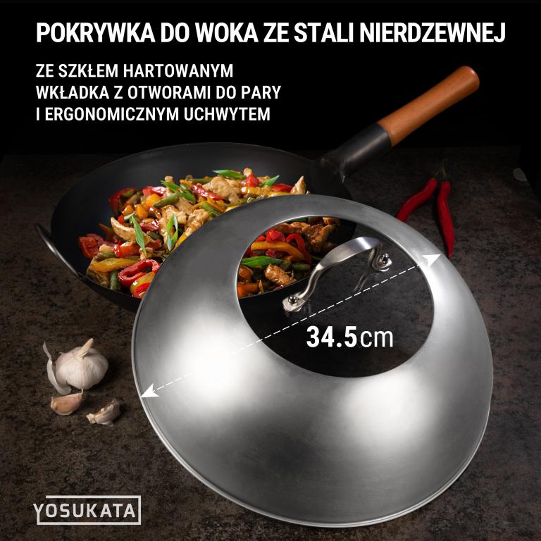 Zwiększ funkcjonalność swojego woka: Pokrywka ze stali nierdzewnej o średnicy 34.5 cm zatrzymuje i równomiernie rozprowadza ciepło, zapewniając bardziej efektywne gotowanie. Akcesoria do woka koncentrują smaki, dzięki czemu jedzenie smakuje lepiej. Wytrzymała i przystosowana do mycia w zmywarce: Nasza pokrywka do woka o średnicy 36 cm jest wykonana z wytrzymałej stali nierdzewnej. Ta pokrywka do woka ze stali nie jest pokryta sztuczną powłoką, która mogłaby przedostać się do żywności. Idealne akcesoria do płyt grillowych: Nasza pokrywka do płyty grillowej o średnicy 34,5 cm umożliwia gotowanie na parze lub smażenie bez rozpryskiwania. Może być również używana jako pokrywka do burgerów, pokrywka do grilla, kopuła do topienia sera, pokrywka do sera, pokrywka do woka, aby utrzymać jedzenie smaczne i ciepłe. Lepsza kontrola: W przeciwieństwie do tradycyjnej pokrywki do woka, nasza pokrywa o średnicy34.5 cm ma wkładkę ze szkła hartowanego, dzięki czemu można zobaczyć, co dzieje się w środku bez konieczności jej podnoszenia. Ergonomicznie zaprojektowany stalowy uchwyt ułatwia trzymanie. Ulepszona konstrukcja: Otwory na parę w naszej pokrywce pozwalają na powolne uwalnianie ciśnienia wewnątrz, aby zapobiec rozpryskom i oparzeniom. Zamów naszą pokrywkę do woka z hartowanym szkłem, aby profesjonalizować swoje gotowanie.